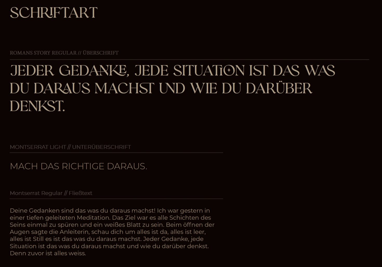 Ela nennt sich selbst eine “moderne Hexe” und das Design spiegelt ihre Personal Brand wieder. Schamarnisch und Alte, schon fast vergessene Lehren, Räucherrituale und Rauhnächte. Das Angebot ist groß und das Brand Design verbindet alle Bereiche miteinander. Die Headline Typografie trägt viel zum Look and Feel des Designs bei. Sie wirkt Feminin und die Kalligrafie erinnert an die Elben aus der Geschichte, Herr der Ringe.